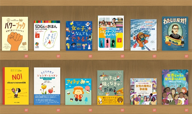 近年、女性やジェンダーに関する絵本の出版が増えています。小学校低学年から読めるジェンダーや男女共同参画に関する絵本を展示します。