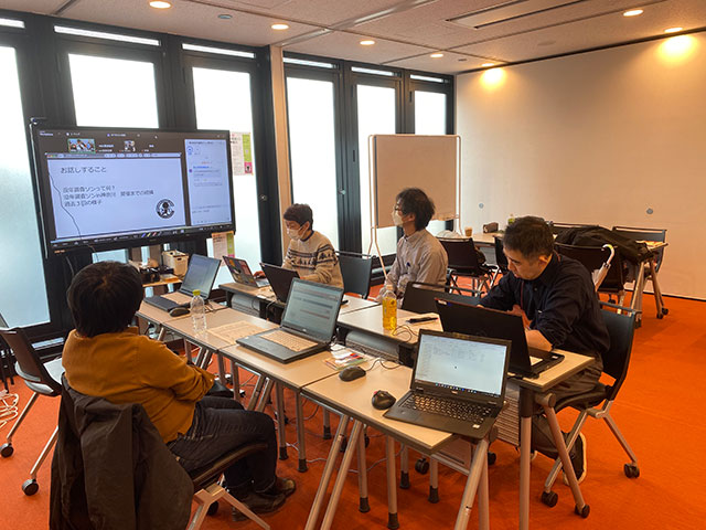 当日、会場とオンラインそれぞれ自己紹介をした後、まずは企画者の田子様より、「没年調査ソン」のこれまでの沿革についてお話いただきました。没年がわかったら「ナイスソン」、存命であれば「なにより」と声掛けをするとのこと。没年を調べていて、「あ、まだ亡くなっていないのね」とわかったときに「(ご存命で)なにより」と言えるのは、気持ちが楽になるなと思いました。