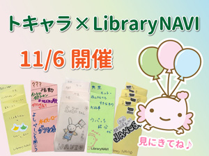 トキャラ(図書館キャラクター)たちが、LibraryNAVI(ライブラリー・ナビ)を使ってキャラクター自己紹介や活動紹介を行います。個性あふれるプレゼンテーションにご期待ください!トキャラを応援するための参加も大歓迎!